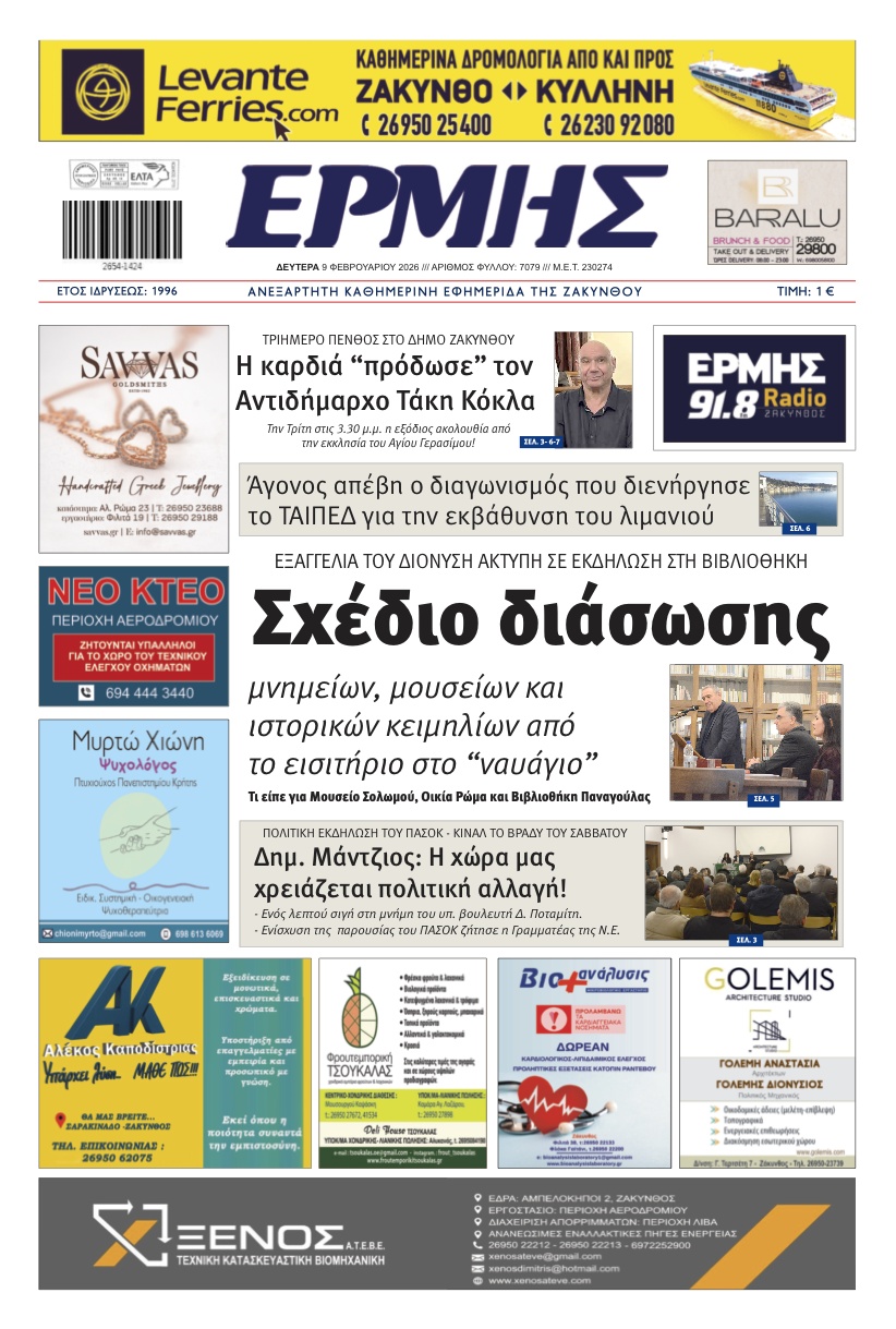 Σε κλίμα βαθιάς συγκίνησης, το Δημοτικό Συμβούλιο του Δήμου Ζακύνθου εξέδωσε ομόφωνα ψήφισμα για τον αιφνίδιο θάνατο του Αντιδημάρχου Τεχνικού Προγράμματος και Κοιμητηρίων και Β’…