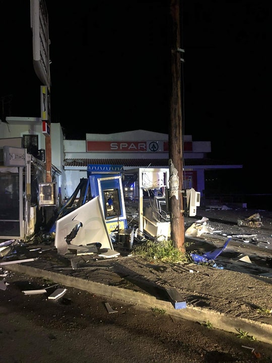 Από την έκρηξη δεν υπέστη ζημίες το κατάστημα SPAR που βρίσκεται λίγα μέτρα πίσω από το ATM και λειτουργεί κανονικά.