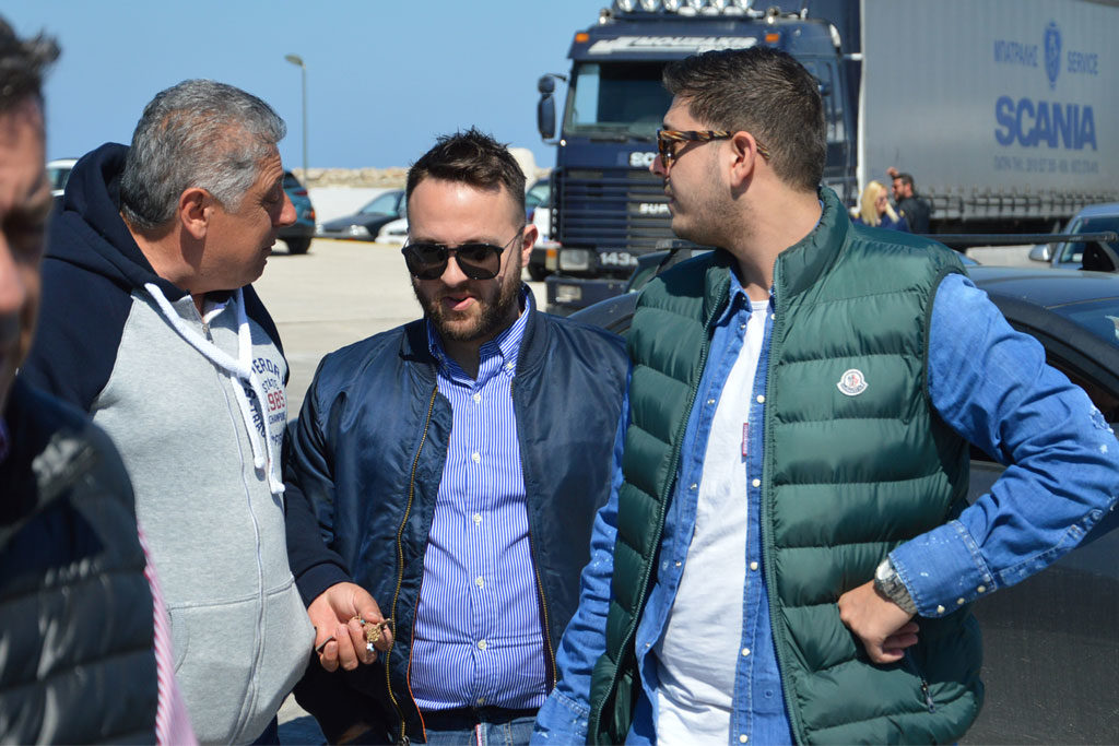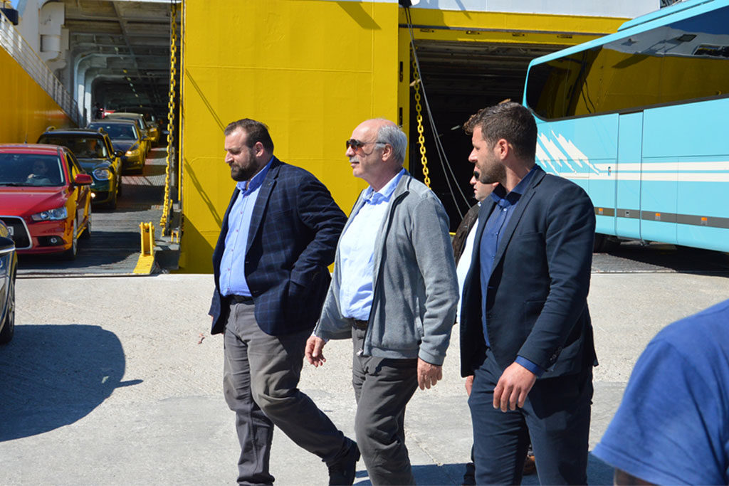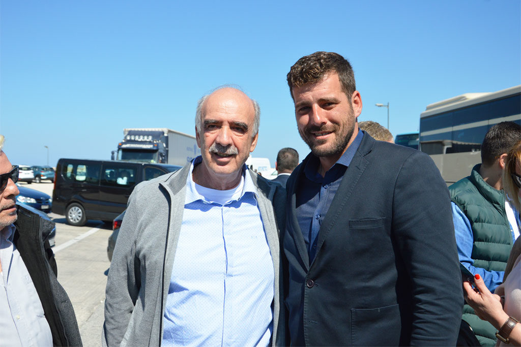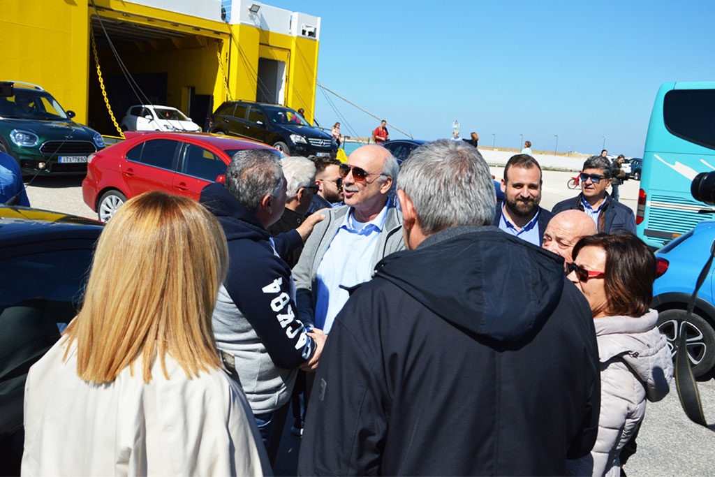 Στο λιμάνι τον επικεφαλής του ψηφοδελτίου της Ν.Δ. για τις επερχόμενες ευρωεκλογές, υποδέχτηκαν πολιτευτές της Ν.Δ. αλλά και παλιά στελέχη του κόμματος, όπου είχε θερμούς εναγκαλισμούς και χειραψίες.