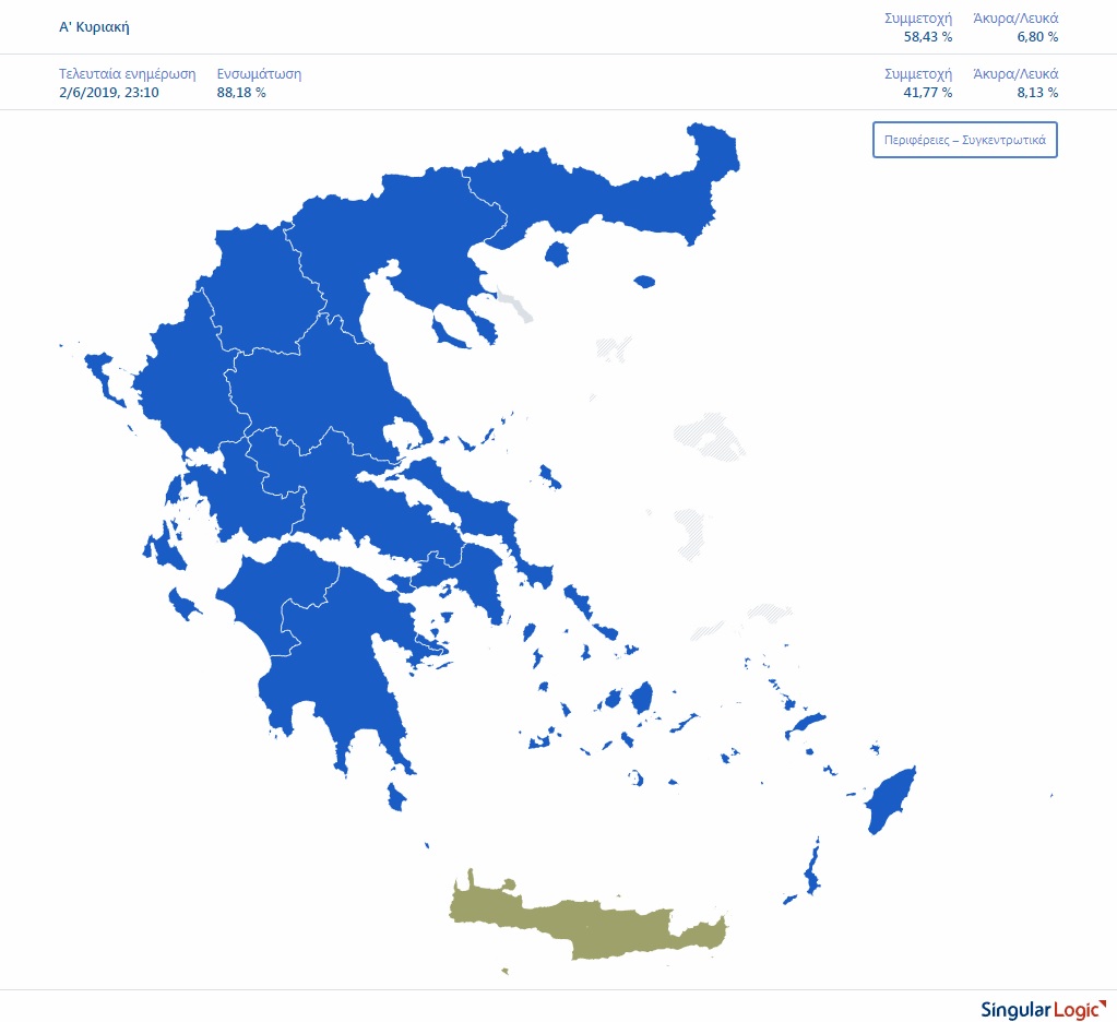 Εκλογές 2019: Πάνω από 90% η Ν.Δ. στις περιφέρειες – Σάρωσε στους δήμους