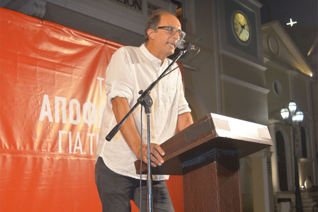 Ο Σταύρος Κοντονής, που ήταν ο κεντρικός ομιλητής, ζήτησε από τους συγκεντρωθέντες στην πλατεία να μην αφήσουν τη χώρα να επιστρέψει στη βαθιά ανθρωπιστική κρίση στην οποία την οδήγησαν τα κόμματα στο παρελθόν.