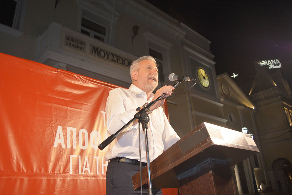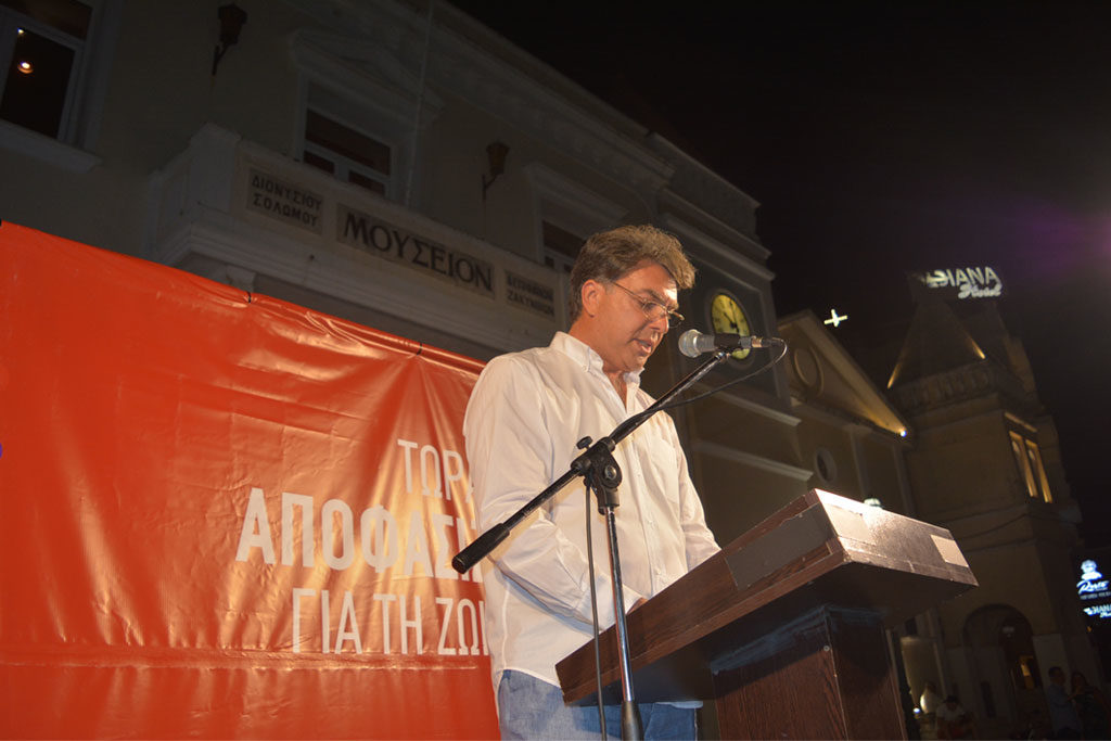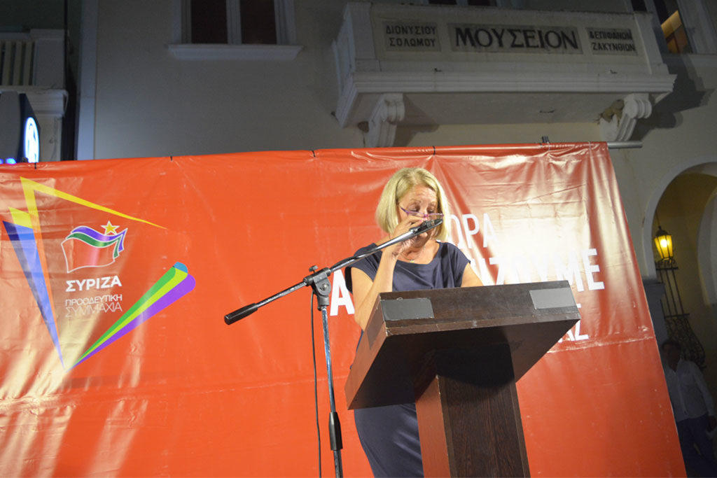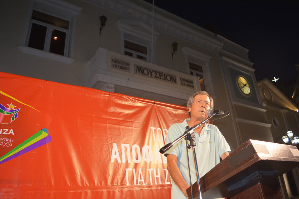 Η κεντρική προεκλογική εκδήλωση του ΣΥΡΙΖΑ έγινε χθες το βράδυ στην πλατεία Αγίου Μάρκου και εκεί οι ομιλητές ζήτησαν να μην φύγει η μονοεδρική της Ζακύνθου και πάει στη νεοφιλελεύθερη δεξιά.