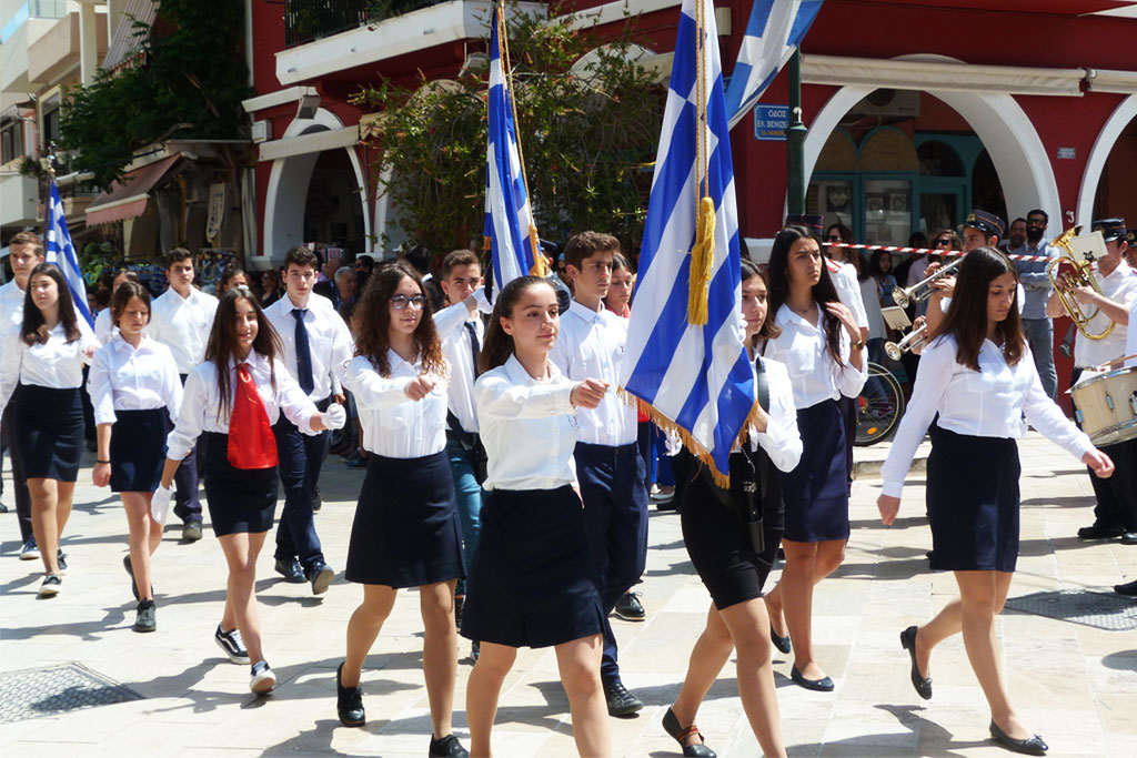 Στις 11.30 στο χώρο μπροστά από το Μέγαρο της Π.Ε. Ζακύνθου έγινε η παρέλαση των Σχολείων Πρωτοβάθμιας και Δευτεροβάθμιας Εκπαίδευσης, (Γυμνάσια) των σωμάτων Ελληνικού Οδηγισμού και Ελλήνων Προσκόπων.
