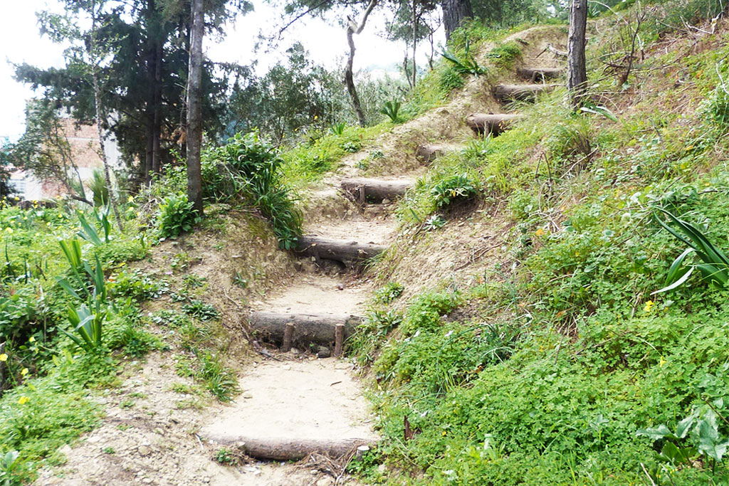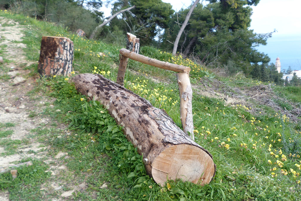 Το μακρύ μονοπάτι έχει διαμορφωθεί για να κάνει πολύ πιο εύκολη την πεζοπορία με κορμούς και μικρά ξύλα, που λειτουργούν ως σκαλιά, ενώ ανά κάποια μέτρα τον επισκέπτη περιμένει μια ευχάριστη έκπληξη : Μεγάλοι κορμοί δέντρων που είχαν πέσει ή έπρεπε να κοπούν έχουν τοποθετηθεί με τέτοιο τρόπο ώστε να δημιουργούν παγκάκια, που προσφέρουν ξεκούραση σε όποιον θέλει να ξαποστάσει ή να απολαύσει το όμορφο τοπίο.