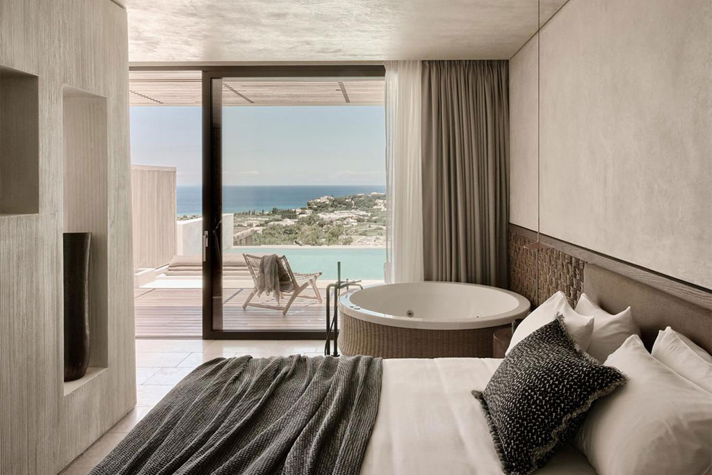 Η ανοιχτή διάταξη είναι απελευθερωτική, καθώς ο ουρανός ενώνεται με τη θάλασσα και η ιδιωτικότητα παραμένει μέσα στον βράχο.