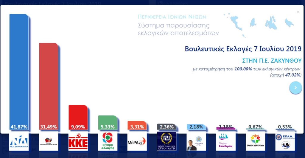 Άνετη αποδείχθηκε η επικράτηση της ΝΕΑ ΔΗΜΟΚΡΑΤΙΑΣ επί του ΣΥΡΙΖΑ στη Ζάκυνθο.