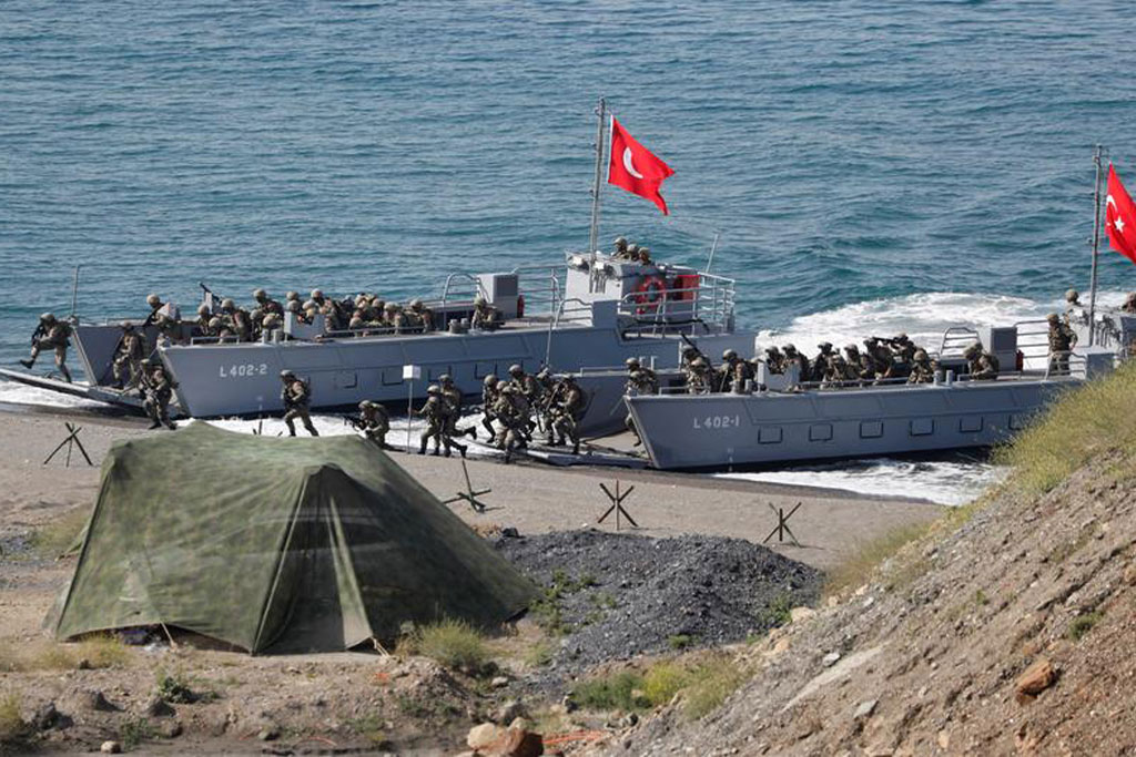 Με αποβατικά πλοία, κομάντο των ειδικών δυνάμεων και τις «ευλογίες» του προέδρου Ερντογάν -ο οποίος επικοινώνησε τηλεφωνικά με τα στρατεύματα για να ευχηθεί καλή επιτυχία- συνεχίζεται η δαιδαλώδης πολεμική άσκηση της Τουρκίας «Γαλάζια Πατρίδα».
