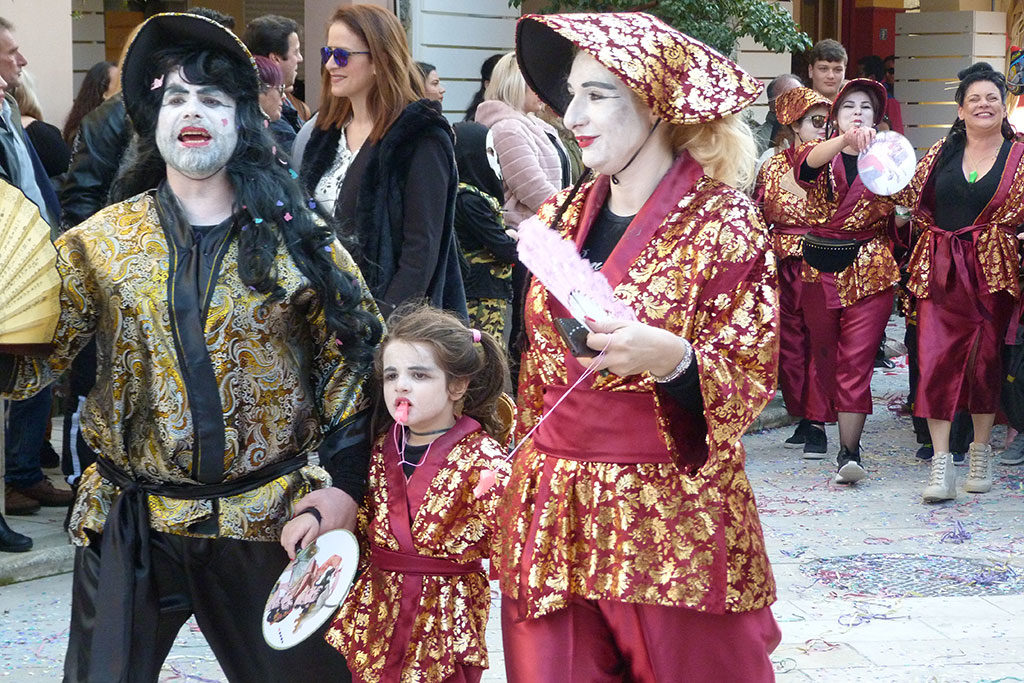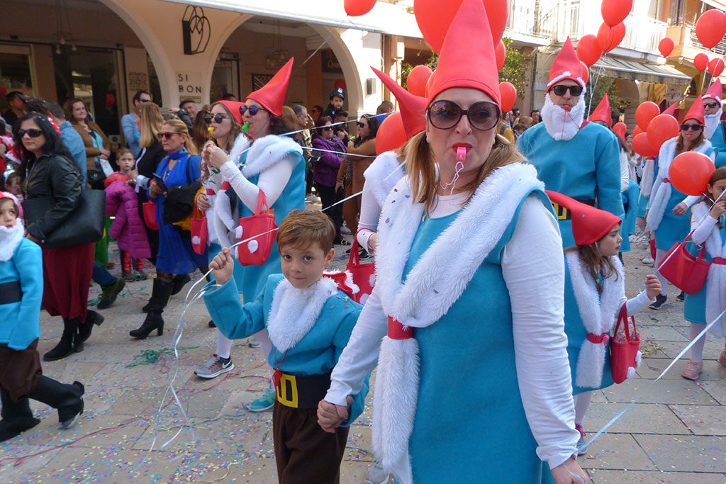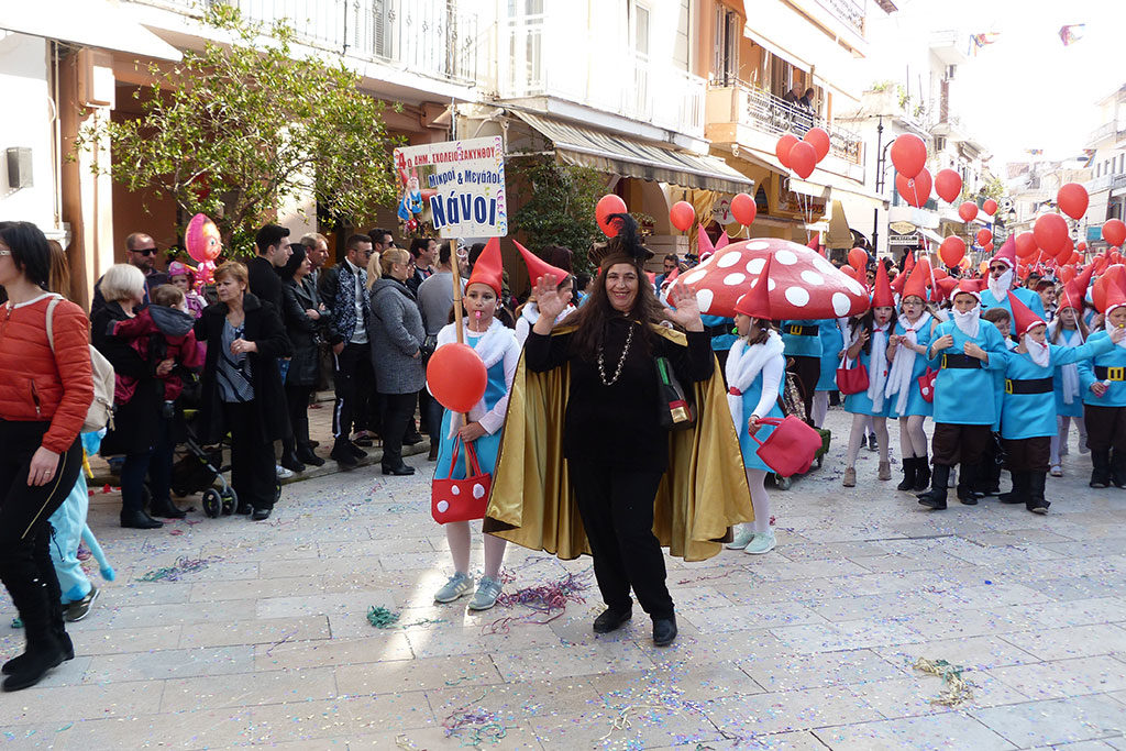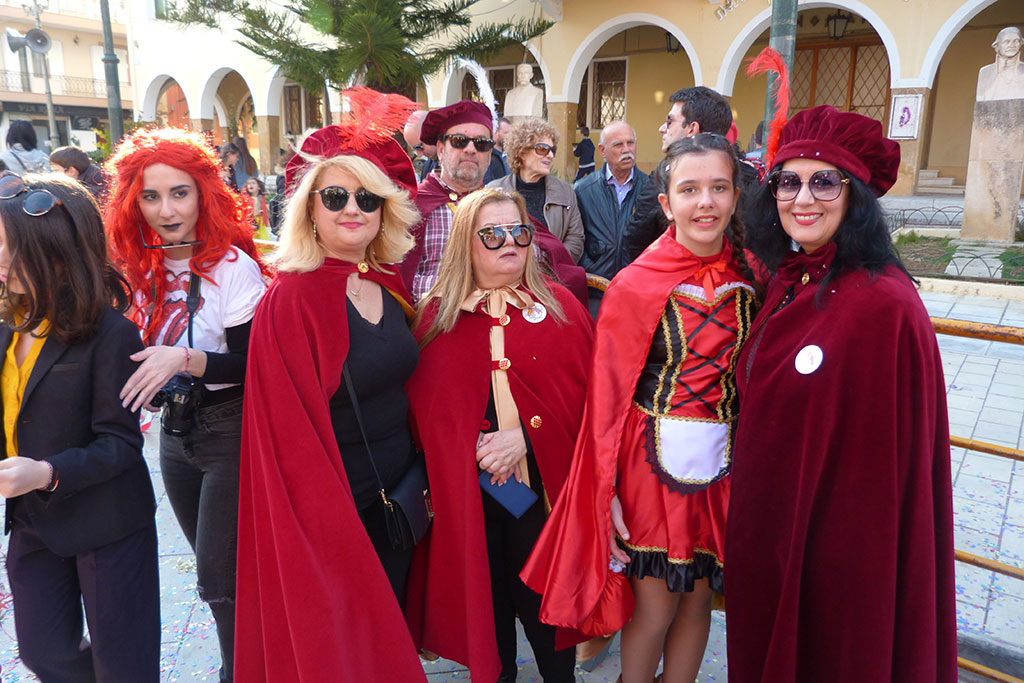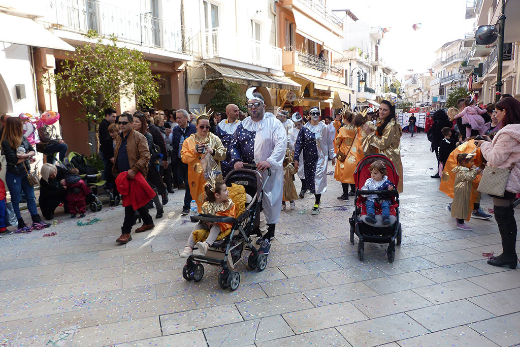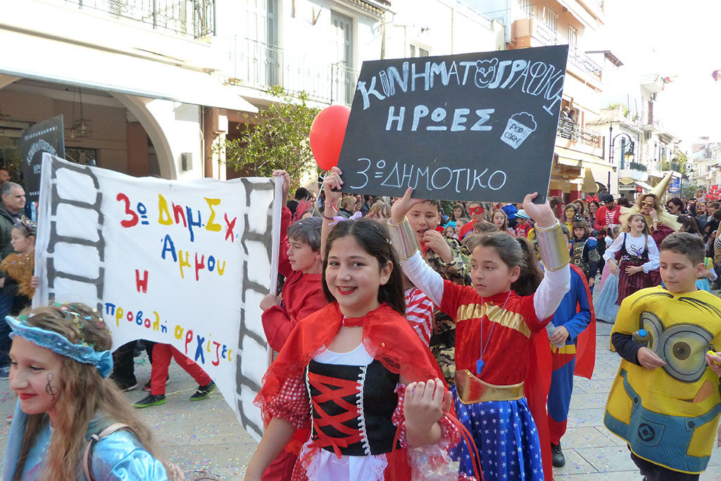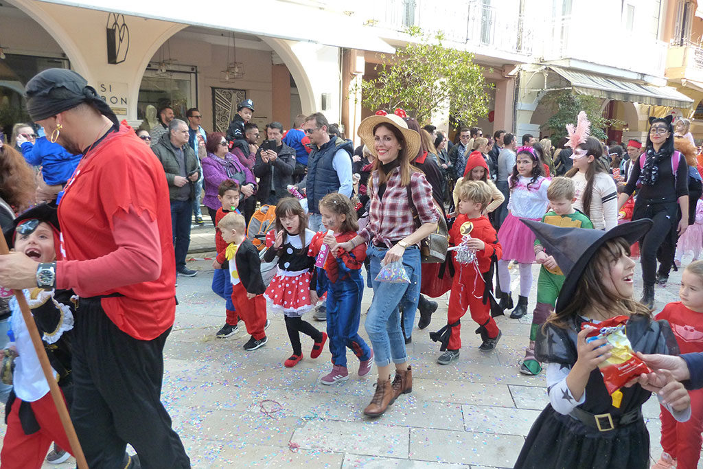 Πρώτο παρέλασε το 1ο Δημοτικό Σχολείο που μας ταξίδεψε στο διάστημα με το γκρουπ «Διαστημάνθρωποι» και ακολούθησε το 2ο Δημοτικό και Νηπιαγωγείο με τις ευφάνταστες στολές και τίτλο του γκρουπ «Ήλιε μου, Φεγγάρι μου». Σειρά είχε το 3ο Δημοτικό με και Νηπιαγωγείο με το γκρουπ «cinema heroes» όπου παιδιά και μεγάλοι διάλεξαν στολές από ήρωες του σινεμά , το 4ο Δημοτικό με τους «μικρούς και μεγάλους νάνους» που κέρδισαν τις εντυπώσεις και τα φωτογραφικά κλικ , το 5ο Δημοτικό και Νηπιαγωγείο με τις όμορφες στολές τους με το “Halloween party”, το Δημοτικό Σχολείο Βασιλικού με το γκρουπ «Πέρα Βρέχει» και τις πρωτότυπες στολές και περούκες, το 7ο Δημοτικό και Νηπιαγωγείο της Ρίζας με την έξυπνη ιδέα να φορέσουν τις πιτζάμες και να συμμετέχουν σε έναν «πιτζαμοπόλεμο» , το 2ο Δημοτικό της Ρίζας που μας θύμισε τη ζακυνθινή παράδοση με τα ντόμινο, το 3ο Δημοτικό Ρίζας μαζί με τον Πολιτιστικό Σύλλογο Καλλιθέας το Κούκεσι που με το γκρουπ «Μπατιρ όιλ» πέρασαν ένα «ηχηρό» μήνυμα για τους κίνδυνους των εξορύξεων στο Ιόνιο, το Δημοτικό Παντοκράτορα με τις πανέμορφες στολές «Γιαπωνέζες, Γκέισες και Σαμουράι» το Δημοτικό Μουζακίου με τα εμπνευσμένα από την σύγχρονη «διαδικτυακή» ζωή μας «τα emoji εν δράσει» και τέλος το 1ο Δημοτικό Κάμπου που μας άνοιξε την όρεξη με τους μάγειρες.
