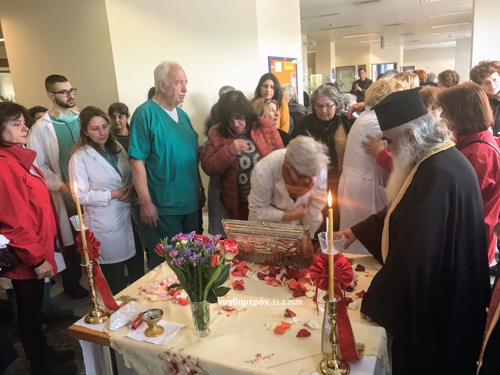 Σήμερα, 11.2.2020, περί τις 11 το πρωί, το σεπτό Χέρι του Αγίου Διονυσίου, ευρισκόμενο προ τριημέρου στα Χανιά, για προσκύνημα εκ μέρους του αγιόφιλου λαού της Κρήτης, μεταφέρθηκε σήμερα στο Γενικό Νομαρχιακό Νοσοκομείο Χανίων “Άγιος Γεώργιος”, ούτως ώστε να ευλογηθούν οι ασθενούντες και νοσηλευόμενοι, η διοίκηση, οι γιατροί, το νοσηλευτικό προσωπικό και οι όλοι εργαζόμενοι στον τόπο αυτόν του πόνου και της σωματικής θεραπείας.