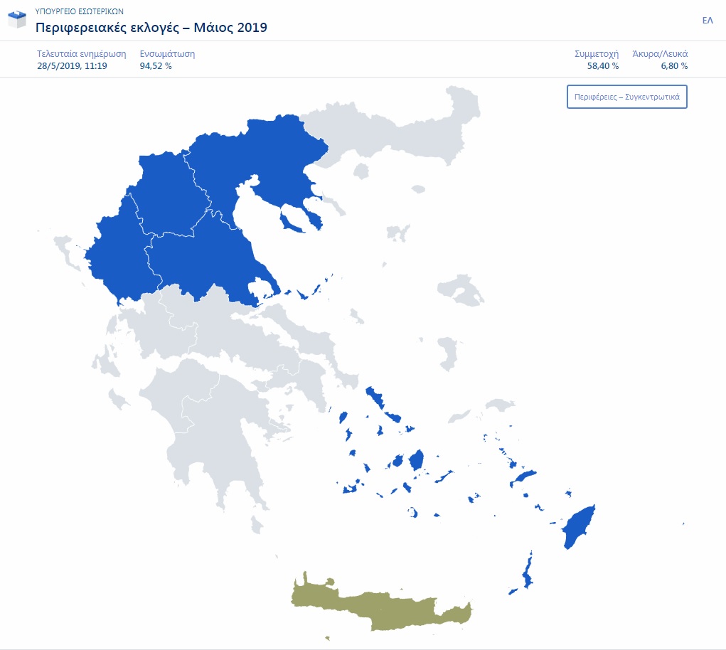 Αττική (Γ. Πατούλης 37,65% – Ρ. Δούρου 19,71% – Γ. Σγουρός 17,40%),
