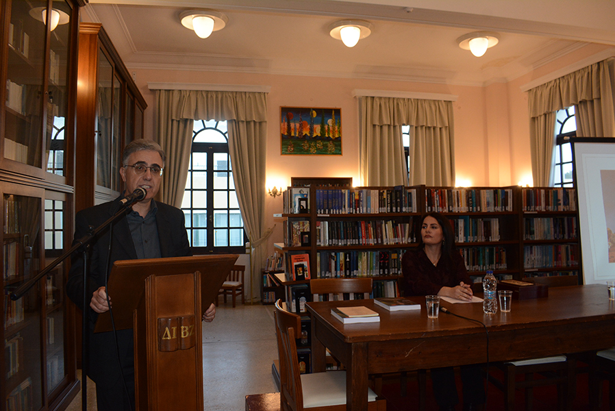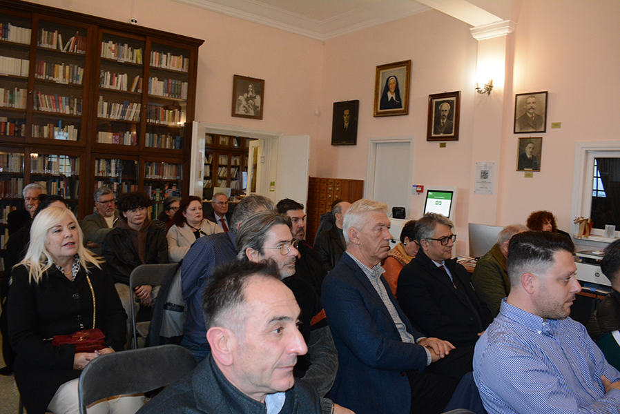 Στο χαιρετισμό του ο πρόεδρος του Ε.Σ. της Βιβλιοθήκης, Φίλιππος Συνετός, ευχαρίστησε τις αρχές και τους φίλους της Βιβλιοθήκης για την υποστήριξή τους και την συμμετοχή του στις δράσεις του οργανισμού και ανακοίνωσε τις δρομολογημένες για το 2026 εργασίες που θα γίνουν στην Βιβλιοθήκη. Η δημιουργία του αποκαλούμενου “θησαυροφυλακίου”, δηλαδή ενός απόλυτα στεγανοποιημένου και υπό αυστηρές συνθήκες ασφάλειας και θερμοκρασίας, δωματίου, στο οποίο θα τοποθετηθούν προς φύλαξη όλες οι σπάνιες και πολύτιμες εκδόσεις της Βιβλιοθήκες, μετά την συντήρηση και την αποκατάστασή τους. Επίσης αναφέρθηκε στις εκδηλώσεις για την συμπλήρωση το 2027, 200 χρόνων απο το θάνατο του ποιητή Ούγου Φώσκολου, στις οποίες πρέπει να συμμετάσχουμε όλοι σε πνεύμα συναντίληψης και συνεργασίας.