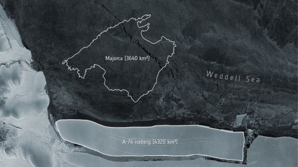 Το παγόβουνο, με την ονομασία Α-76, έχει περίπου 170 χιλιόμετρα μήκος και 25 χιλιόμετρα πλάτος και συνολικό εμβαδό 4.320 τετραγωνικών χιλιομέτρων. Αποκολλήθηκε στη θάλασσα Ουέντελ, σύμφωνα με χθεσινή ανακοίνωση της Υπηρεσίας.