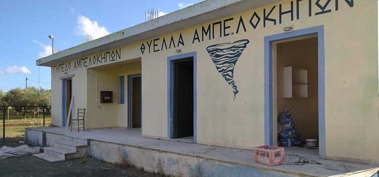 Το συνεργείο το όποιο είναι από τη Ζάκυνθο έχει αναλάβει την αποπεράτωση των κτηριακών εγκαταστάσεων των αποδυτήριων διαιτητών,  των δύο ομάδων, το ιατρείο όπως επίσης και την καντίνα. Ο συνθετικός χλοοτάπητας έχει παραγγελθεί και θα είναι στα μέσα στου Οκτωβρίου στο νησί. Οι εργασίες σύμφωνα με το εργολάβο θα ολοκληρωθούν τον Νοέμβριο.