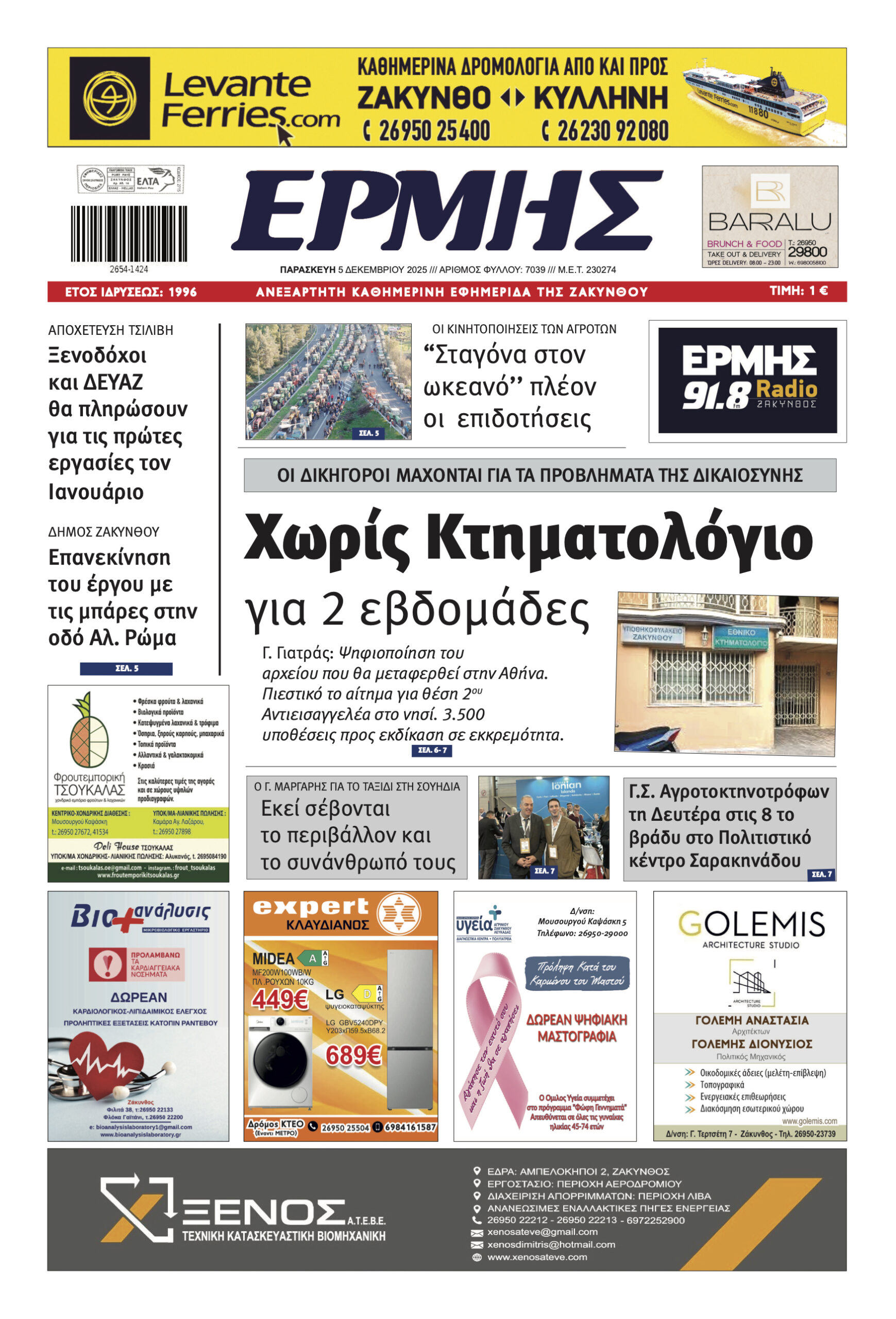 Σήμερα, Παρασκευή 5 Δεκεμβρίου, παρά την κακοκαιρία που επικρατεί στην Ζάκυνθο, σύμφωνα με ενημέρωση από το Λιμεναρχείο Ζακύνθου, όλα τα δρομολόγια στα πλοία της γραμμής…