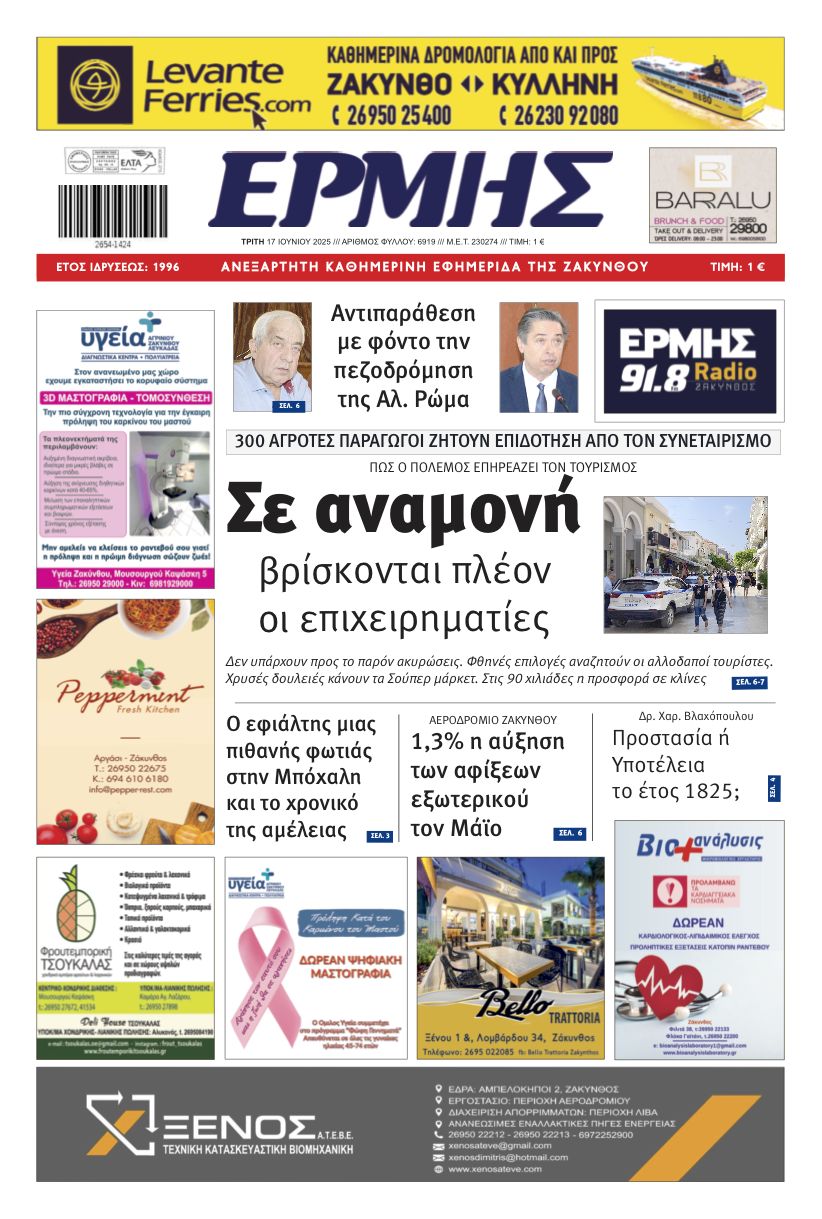 Το πρόγραμμα του για τη Ζάκυνθο αλλά και την μελέτη ανάπλασης του παραλιακού μετώπου της πόλης, θα παρουσιάσει το Σάββατο 9 Σεπτεμβρίου και ώρα 19.30…
