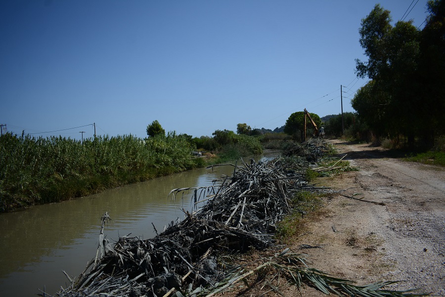 Σε μία ακτίνα μερικών χιλιομέτρων το μηχάνημα αφαιρεί ότι άχρηστο υπάρχει ενώ σε άλλο σημείο το μηχάνημα έκοψε τα καλάμια από τη ρίζα τους.  Από τη γέφυρα Αμπελοκήπων και στις δύο πλευρές της είναι εμφανές ότι έχουν γίνει παρεμβάσεις και τώρα ο καθαρισμός γίνεται και μέσα στο νερό.