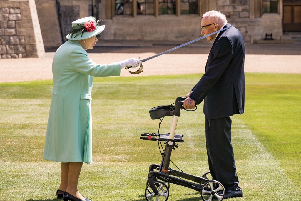 Αν και όλες οι απονομές αυτού του είδους, που επρόκειτο να διεξαχθούν τον Ιούνιο και τον Ιούλιο στα ανάκτορα του Μπάκιγχαμ, στο Λονδίνο, αναβλήθηκαν λόγω του νέου κορωνοϊού, έγινε μια εξαίρεση για τον «Κάπτεν Τομ».