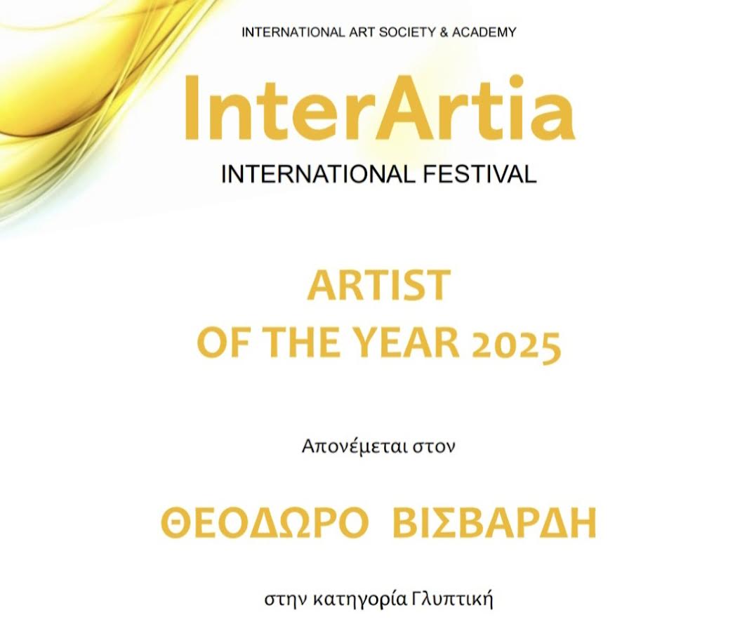 Ο Θεόδωρος Βισβάρδης απέσπασε τον τίτλο Αrtist of the Year 2025 κερδίζοντας παράλληλα το 1ο Βραβείο στον διαγωνισμό για το σύνολο του έργου του «Έρωτας & Ελπίδα» και «Σκέψις» στην κατηγορία της Γλυπτικής στο International Festival InterArtia στο Βόλο.