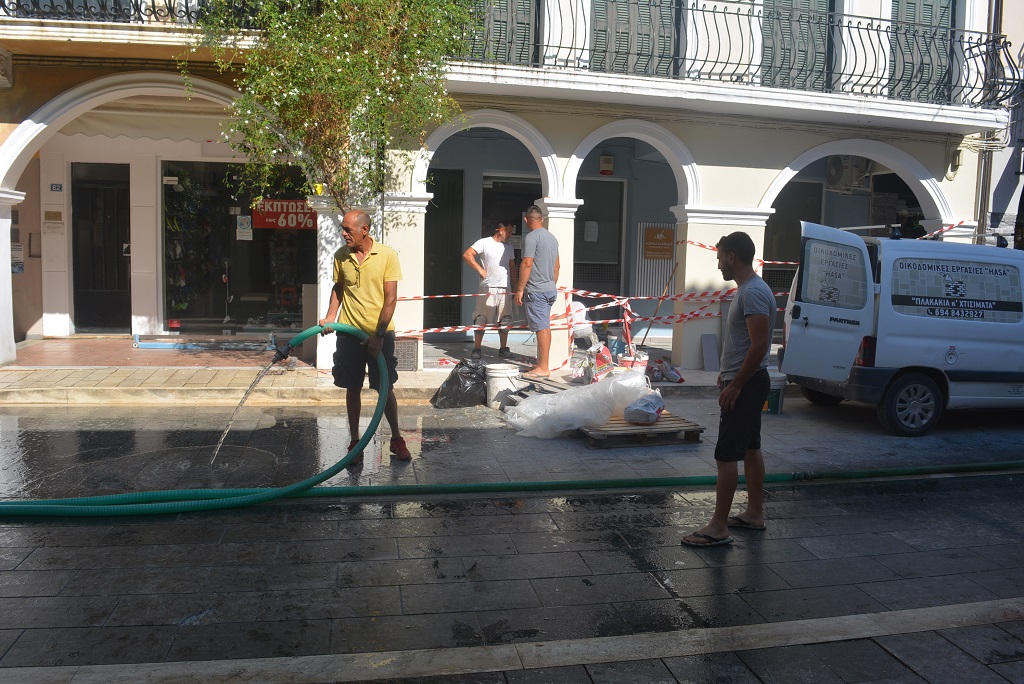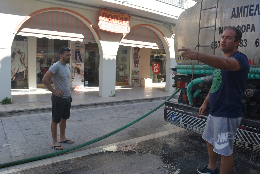 Με ρίψη νερού και με απολυμαντικό φάρμακο, ο δρόμος πλύθηκε καθ’ ολοκληρίαν, ενώ νερό έφερε υδροφόρα ιδιώτη (ο κ. Αμπελάς) τον οποίο ο Δήμος ευχαρίστησε και δημόσια.