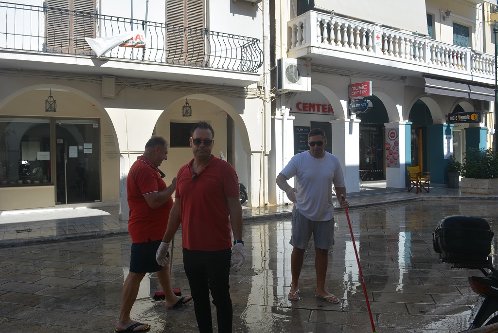 Στην όλη προσπάθεια συνέδραμαν και επιχειρηματίες που δραστηριοποιούνται στο συγκεκριμένο χώρο, οι οποίοι αν και ήταν λίγοι καθώς ήταν Κυριακή πρωί και δεν βρίσκονταν στα καταστήματά τους, βοήθησαν στο μέτρο του δυνατού για τον καθαρισμό. Με σκούπες στα χέρια έπλυναν το οδόστρωμα και μαζί με τους αυτοδιοικητικούς έκαναν πράξη αυτό που ζητά η κοινή γνώμη, δηλαδή να υπάρχει παντού καθαριότητα.
