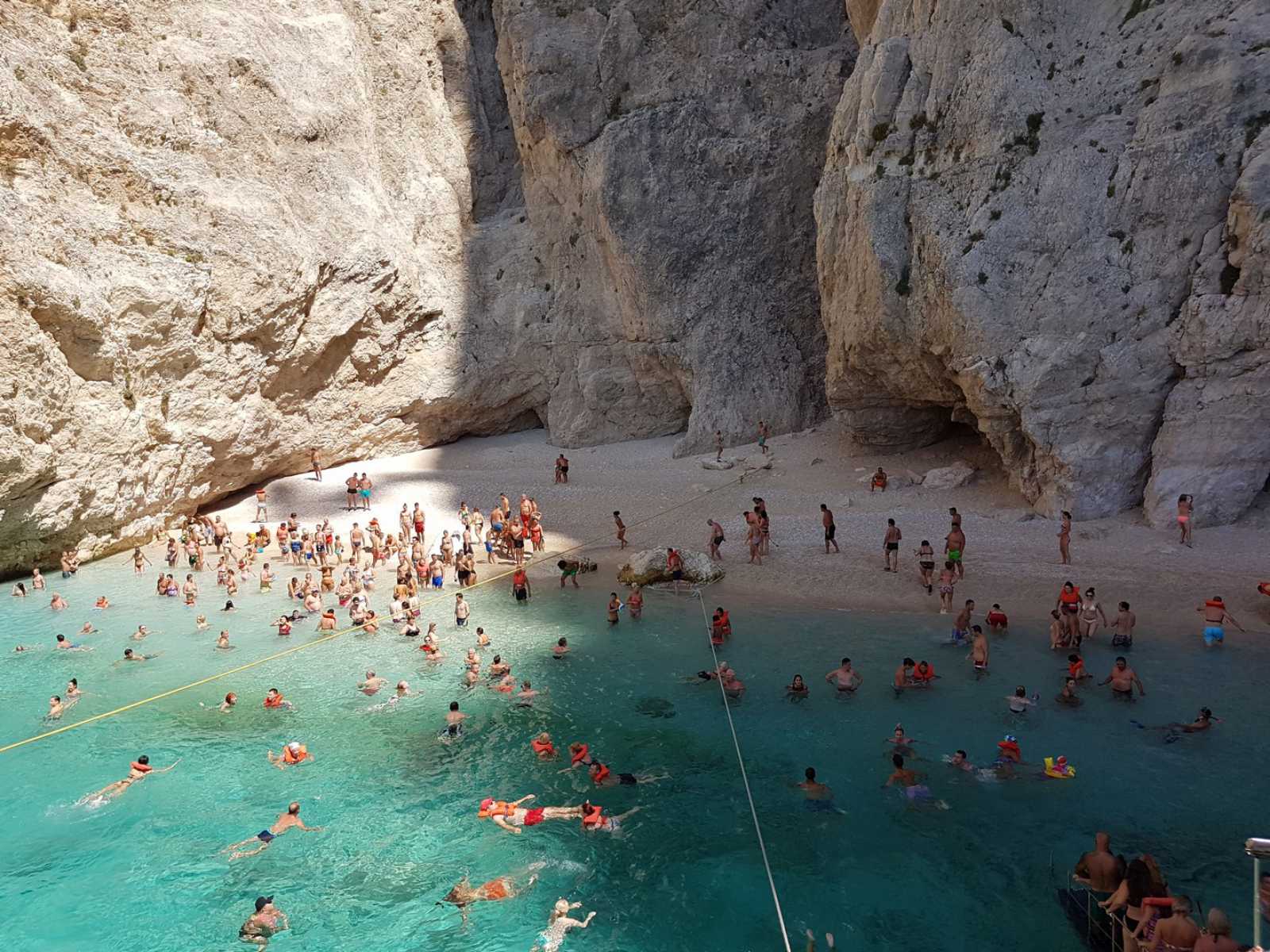 Η παραλία Πόρτο Σχίζα προσελκύει καθημερινά δεκάδες σκάφη και εκατοντάδες τουρίστες που αναζητούν τα καταγάλανα νερά της Ζακύνθου.