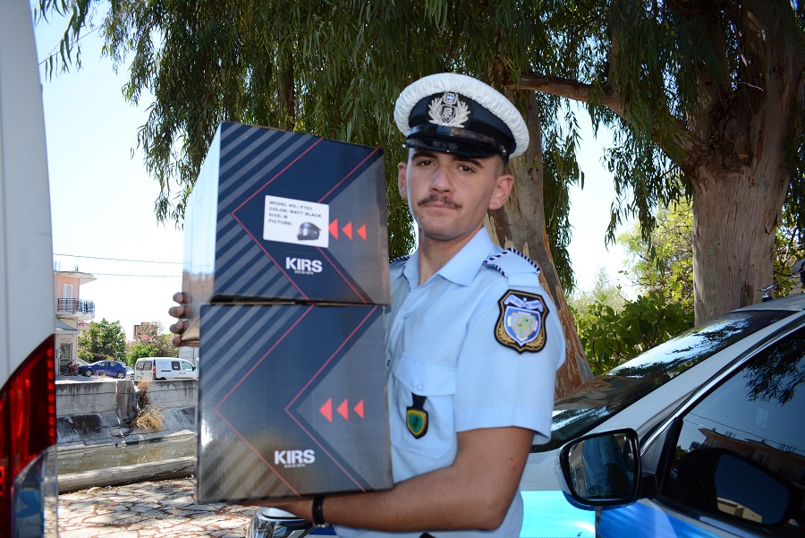 Ένα μικρό φορτηγό όχημα της Αστυνομίας γεμάτο με καινούργια κράνη, μοιράστηκαν στους οδηγούς που ευχαρίστησαν με τη σειρά τους για την πρωτοβουλία και έδωσαν συγχαρητήρια στους Αστυνομικούς.