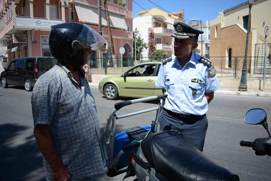 Ο Διοικητής Νεκτάριος Τσώλος ενημέρωνε τους οδηγούς για τς αυστηρές ποινές που προβλέπονται από τη μη χρήση του κράνους και για την καμπάνια που γίνεται σε όλη τη χώρα ώστε οι οδηγοί να κυκλοφορούν στους δρόμους με περισσότερη σφάλεια.