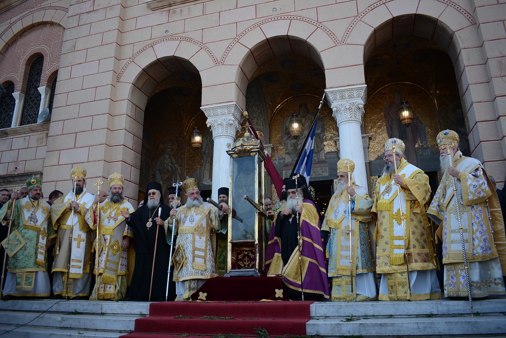 Στην πολυαρχιερατική θεία λειτουργία σήμερα ήταν οι Μητροπολίτες: Ζακύνθου Διονύσιος και Δωδώνης Χρυσόστομος καθώς και οι Μητροπολίτες Ρεθύμνης, Λαγκαδά, Ηλείας, Λαρίσης, Ζάμπιας και ο Γραμματέας της Ιεράς Συνόδου.