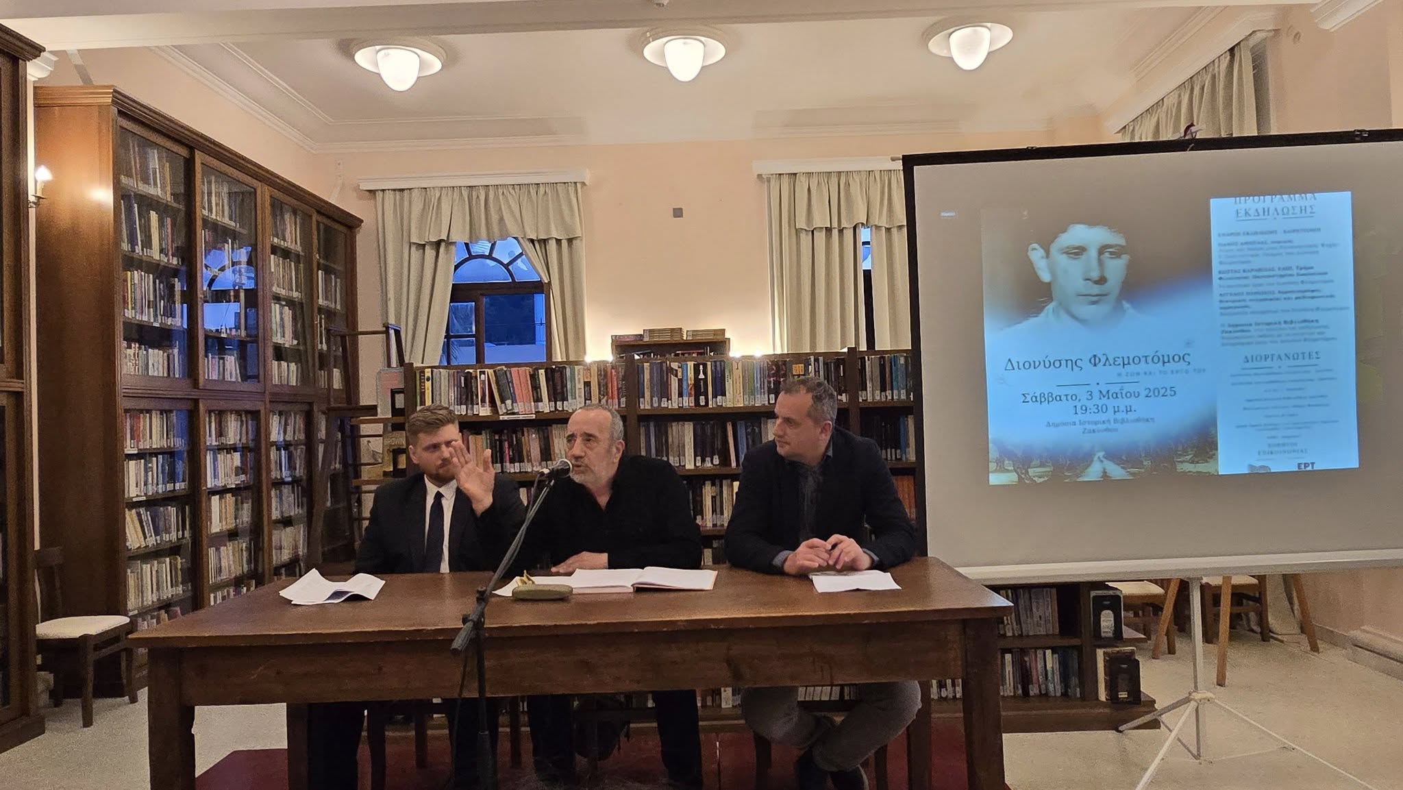Μέσα σε μια έντονη συγκινησιακή ατμόσφαιρα στο Αναγνωστήριο της Δημόσιας Ιστορικής Βιβλιοθήκης Ζακύνθου, πραγματοποιήθηκε το βράδυ του περασμένου Σαββάτου φιλολογικό μνημόσυνο αφιερωμένο στον αείμνηστο λαογράφο, συγγραφέα, ποιητή και δάσκαλο Διονύση Φλεμοτόμο.