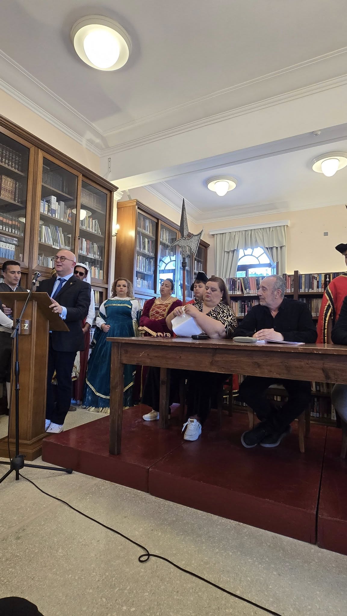 Σεβασμιότατε, αξιότιμες κυρίες και κύριοι, φίλες και φίλοι σας καλωσορίζουμε απόψε στην Δημόσια Βιβλιοθήκη Ζακύνθου, που με νόμο έχει λάβει τον τίτλο ιστορική επειδή την ιστορικά της την επιβεβαιωνει ο πλούτος των συλλογών της και οι ρίζες της, που χάνονται στα βάθη των αιώνων.