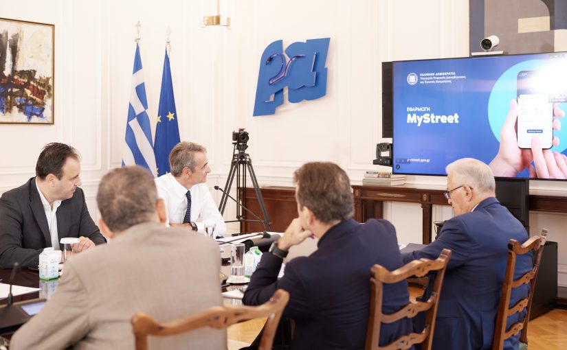 Παρουσιάστηκε χθες σε σύσκεψη υπό τον πρωθυπουργό Κυριάκο Μητσοτάκη, στο Μέγαρο Μαξίμου, η εφαρμογή MyStreet, η οποία είναι ένα σύγχρονο ψηφιακό εργαλείο που δίνει τη δυνατότητα στους πολίτες να συμβάλλουν στη διαφύλαξη της νομιμότητας και της διαφάνειας στους δημόσιους χώρους.