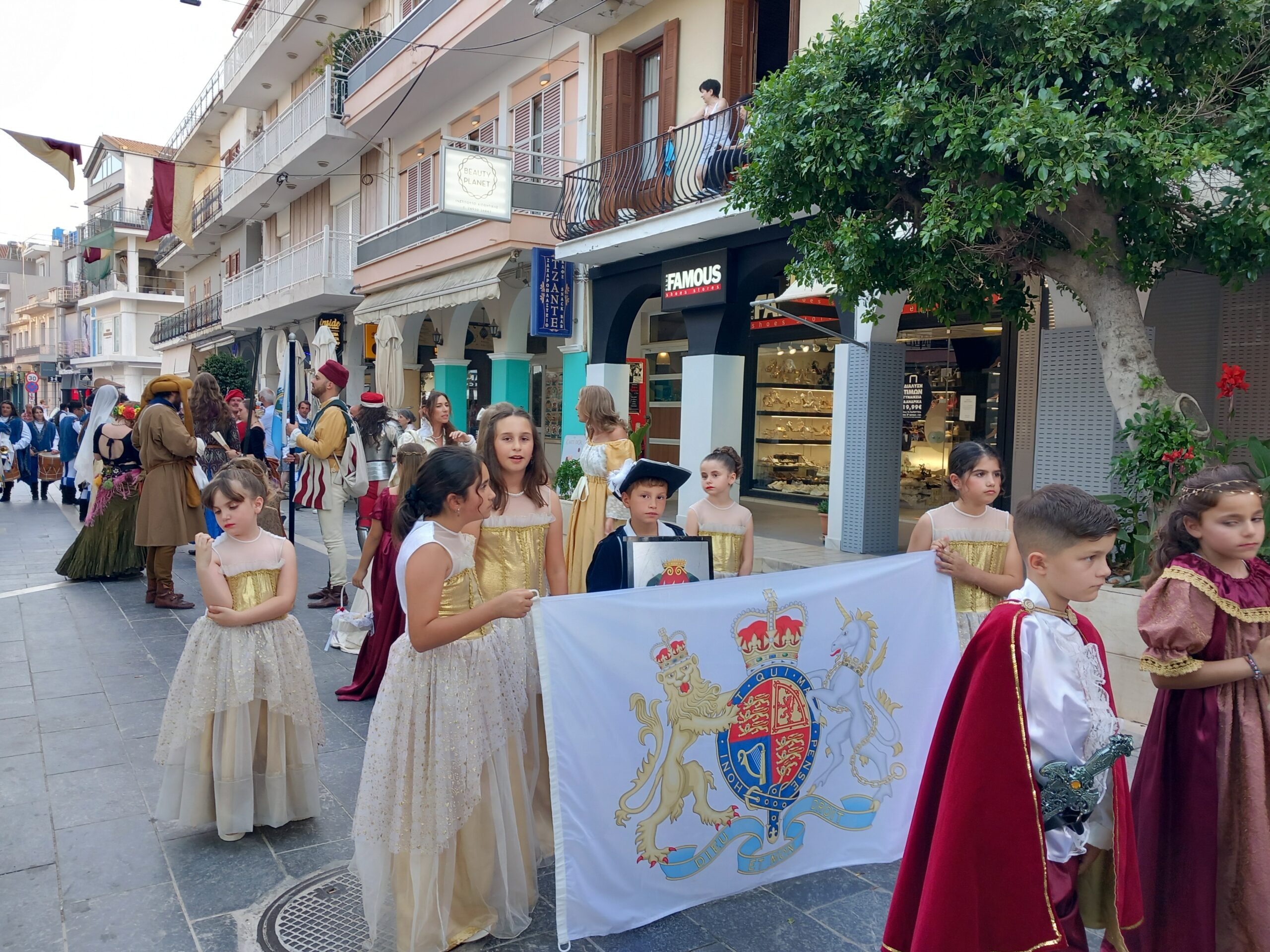 Μικροί “ιππότες” και “ευγενικές δεσποινίδες”, ντυμένοι με παραδοσιακές μεσαιωνικές φορεσιές, ξεκίνησαν σε πομπή από το σημείο των Αγίων Σαράντα και κατευθύνθηκαν προς την πλατεία Σολωμού, δημιουργώντας ένα μαγευτικό θέαμα που καθήλωσε κατοίκους και επισκέπτες.