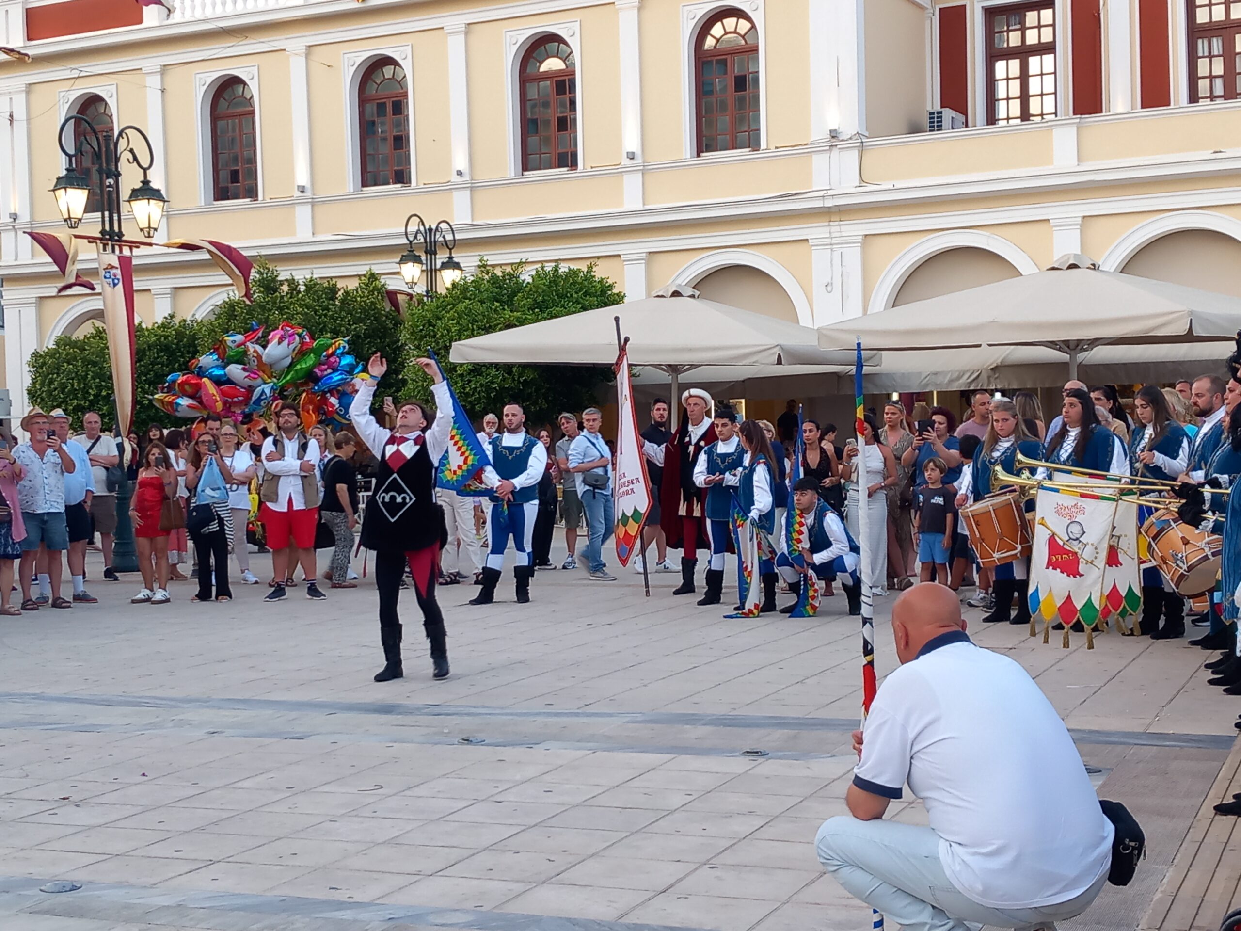Κατά την άφιξή τους στην πλατεία, οι μικροί συμμετέχοντες πήραν μέρος σε συμβολικά αγωνίσματα, εμπνευσμένα από τα ιπποτικά ιδεώδη, με στόχο όχι μόνο τη διασκέδαση αλλά και τη γνωριμία των παιδιών με την ιστορία και τις παραδόσεις της Ζακύνθου.