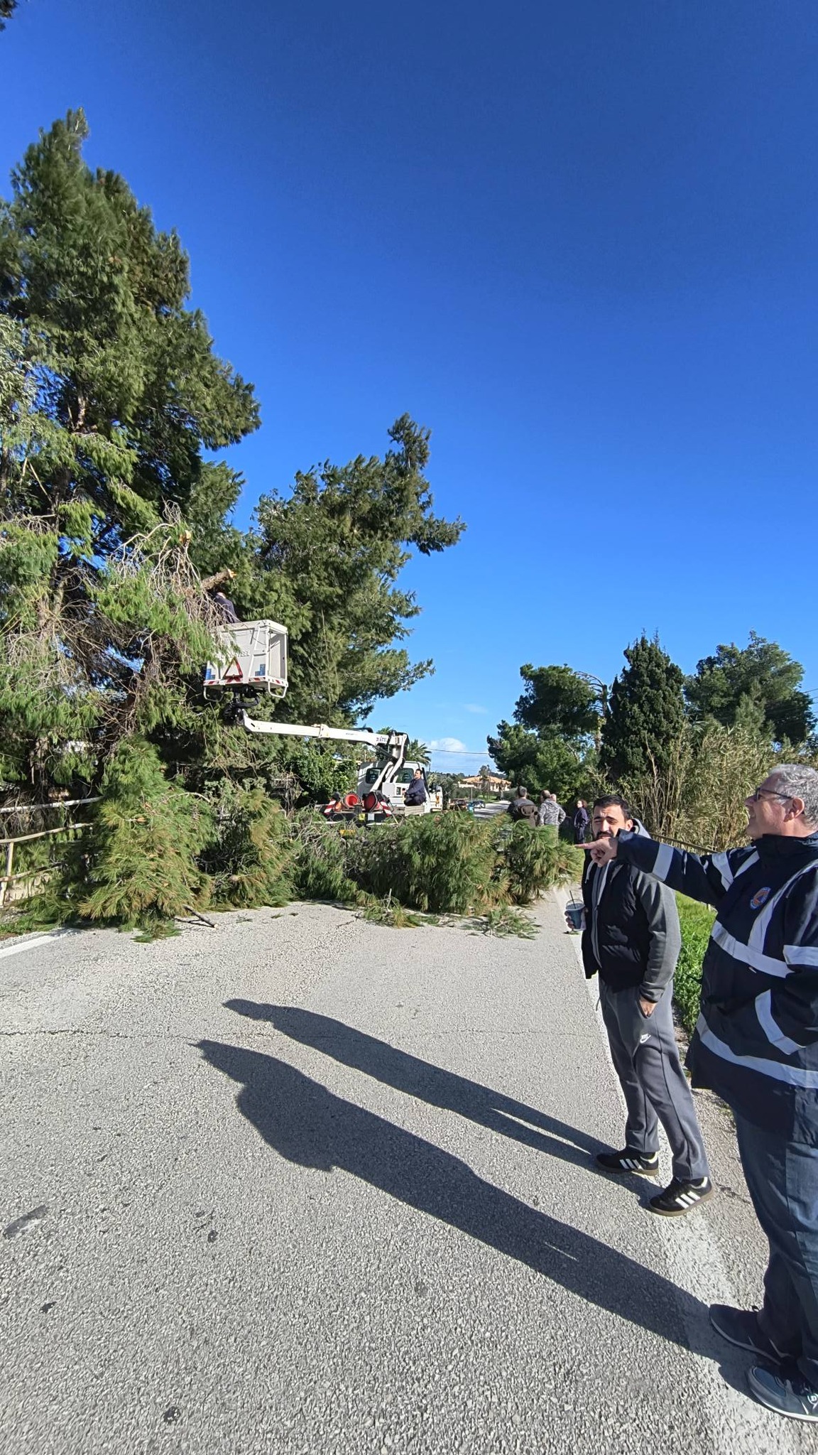 Σε άμεση συνεργασία με τα ειδικά συνεργεία του Δήμου, πραγματοποιείται αυτή την ώρα η κοπή και απομάκρυνση του δέντρου, με στόχο την άμεση αποκατάσταση της κυκλοφορίας.