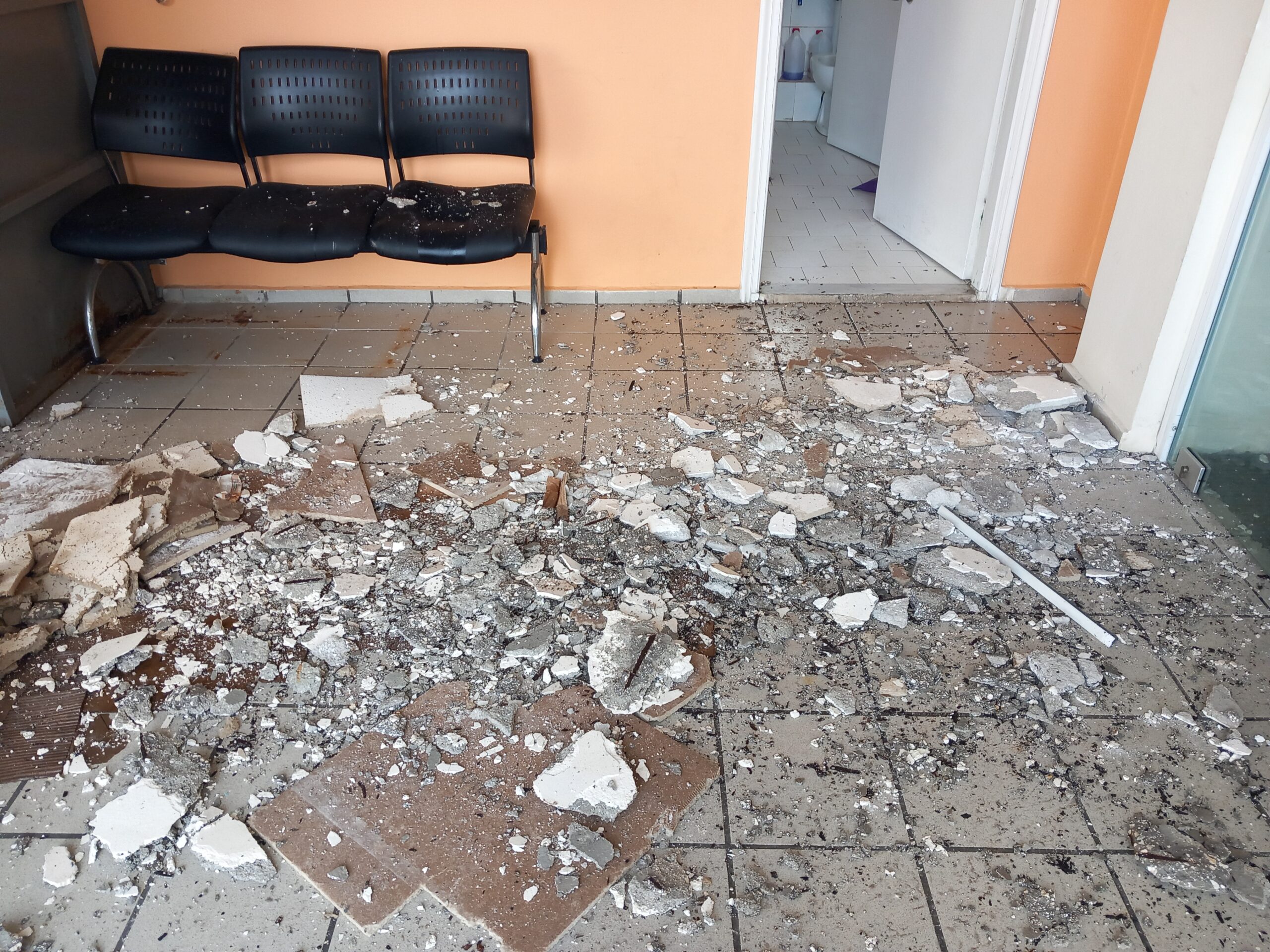 Σύμφωνα με τις πρώτες πληροφορίες, η πτώση οφείλεται στις έντονες βροχοπτώσεις των τελευταίων ημερών, που προκάλεσαν φθορές στην οροφή του κτιρίου.
