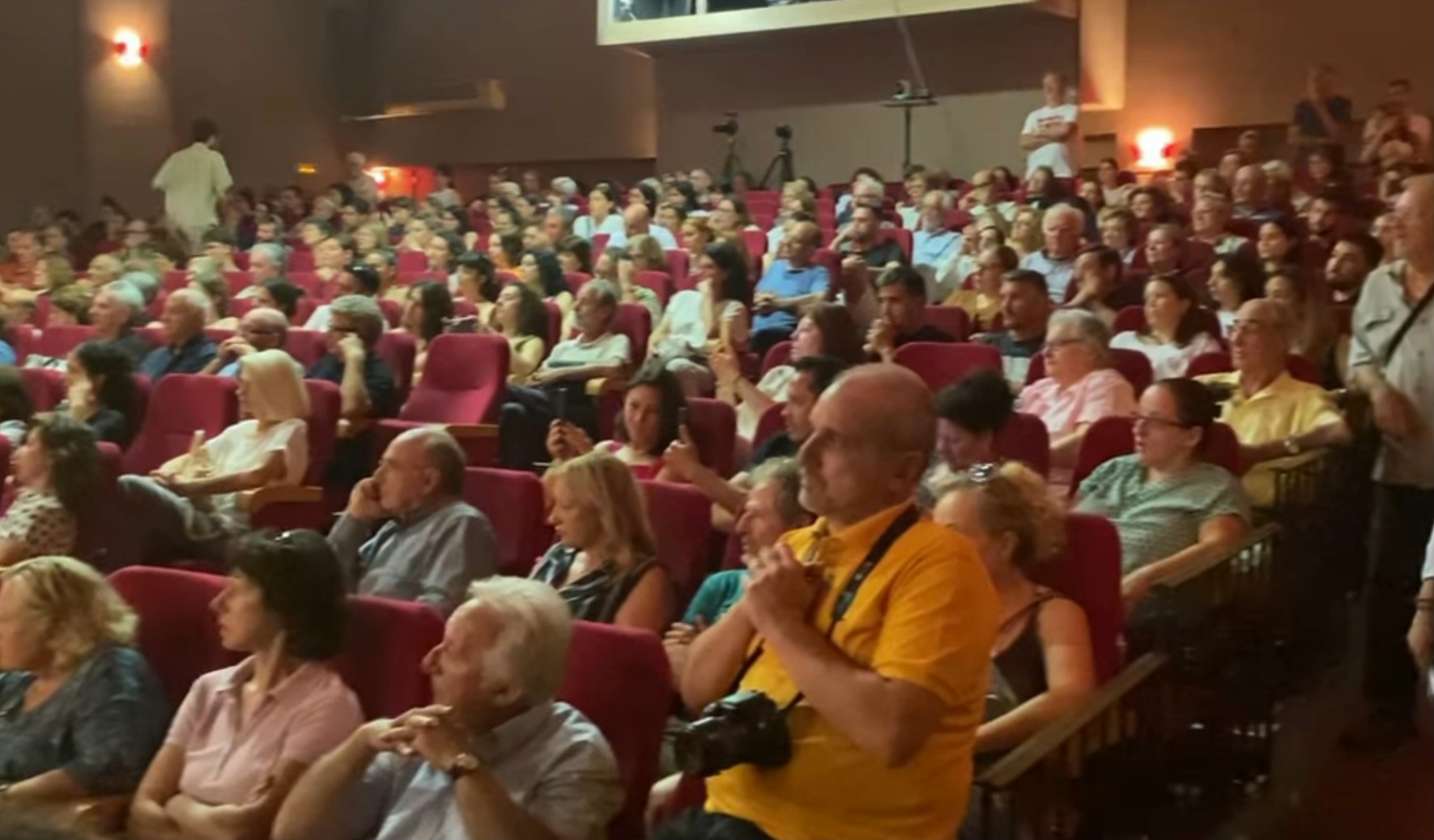 Το θέατρο του Σαρακηνάδου γέμισε ασφυκτικά από κόσμο που ήρθε να ακούσει, να στηρίξει και να τιμήσει την μνήμη των θυμάτων. Νέοι, ηλικιωμένοι, οικογένειες, όλοι παρόντες σε μια εκδήλωση που δεν ήταν απλώς λόγια, αλλά φωνή ψυχής. Ήταν μια βραδιά που ένωσε τον πόνο με την απαίτηση για αλήθεια και δικαίωση.