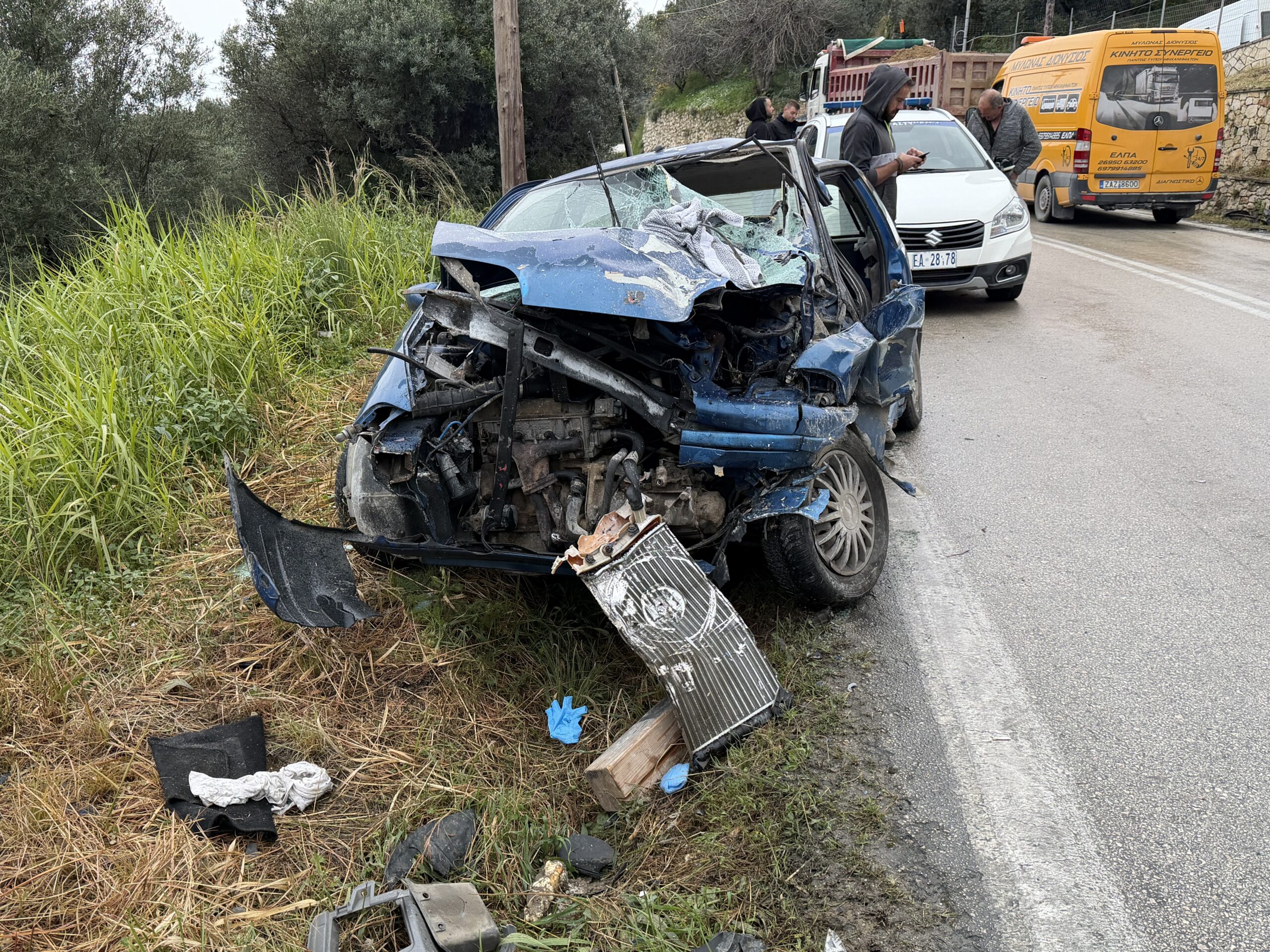 Ελαφρά τραυματίστηκε μόνο οδηγός του Ι.Χ. αυτοκινήτου, ο οποίος μεταφέρθηκε στο Νοσοκομείο Ζακύνθου με ασθενοφόρο του ΕΚΑΒ.