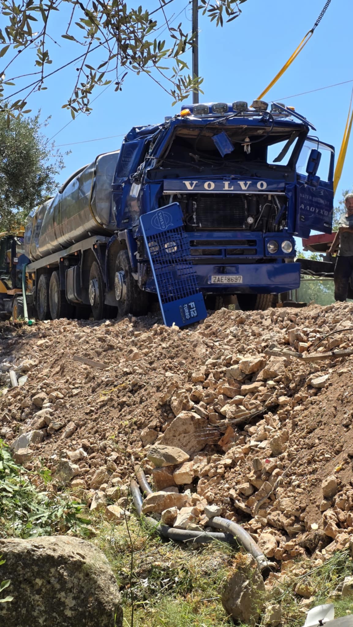 Οπως φαίνεται καθαρά η υδροφόρα ανετράπη εξ’ολοκλήρου και υπέστη σοβαρές ζημίες όταν παρεξέκλεινε της πορείας της για να μην συγκρουσθεί με άλλο διερχόμενο όχημα.