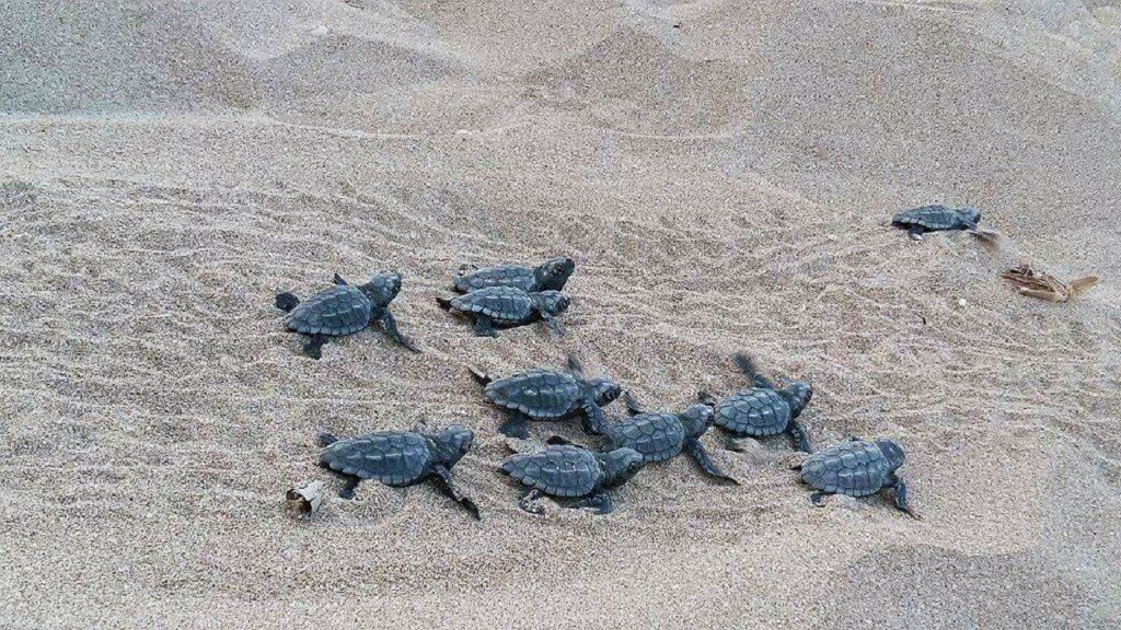 Σκεφτείτε μικρά χελωνάκια, μήκους 4,6 εκ. και βάρους 20 γραμμαρίων το καθένα, τα οποία μόλις βγήκαν από τη φωλιά τους. Έφτασαν στην επιφάνεια της φωλιάς τη νύχτα ή τα ξημερώματα, μετά από περίπου δύο μήνες επώασης. Η αντανάκλαση των άστρων και του φεγγαριού στο νερό ή η αντανάκλαση της αυγής θα έπρεπε να τα οδηγήσει στον προορισμό τους – τη θάλασσα.
