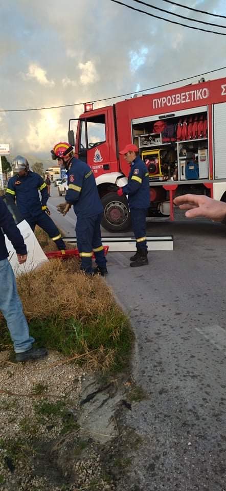 Για τον απεγκλωβισμό του χρειάστηκαν 3 πυροσβεστικά οχήματα με 9 πυροσβέστες.