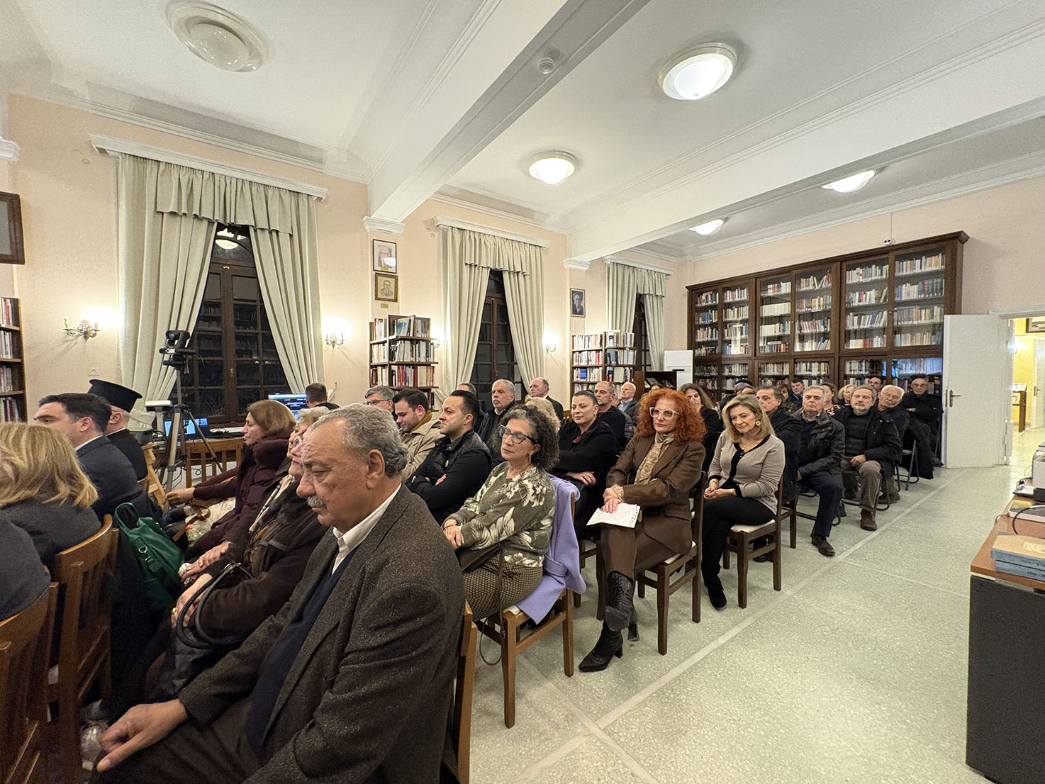 Η εκδήλωση έγινε στον χώρο του αναγνωστηρίου της Βιβλιοθήκης και συγκέντρωσε πλήθος κόσμου, ανθρώπους των γραμμάτων και της τέχνης, αλλά και πολίτες που θέλησαν να τιμήσουν τη μνήμη και το έργο του μεγάλου ζωγράφου αλλά και τον δωρητή Χαράλαμπο Μάνεση.